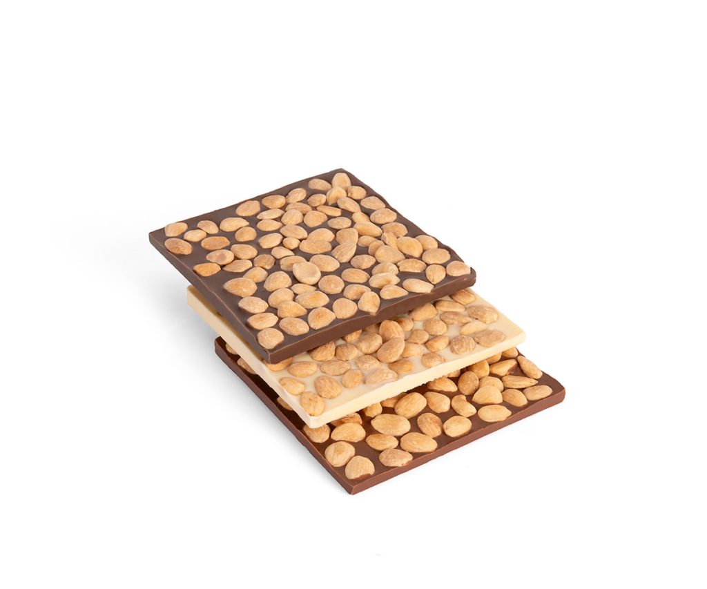 Sabes lo bien que combina la almendra con el chocolate, por ello disfruta del sabor de la mejor almendra marcona con los diferentes chocolates disponibles (blanco, con leche y negro 70%) en formato torta de turrón cuadrada.